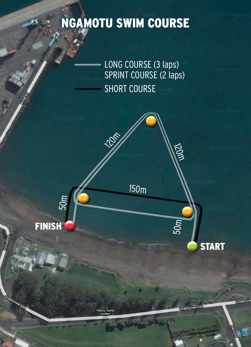 Both courses are open for public participation. The long course will host the Taranaki Triathlon Club Triathlon Champs. Starting with a beautiful harbour swim participants will complete a scenic but challenging bike course taking in some great views along coastal New Plymouth before running along the flat around Ngamotu Beach.